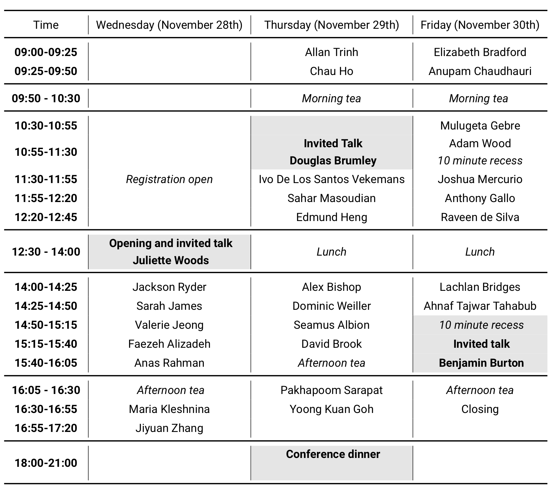 The 2018 edition of the conference will run from 12.30pm Wednesday 28th November through to the evening of Friday 30th November. The conference dinner will be held on the 29th November at the King's Head Pub; and a preliminary schedule is available below.